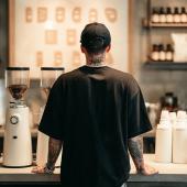 Mens Black Comfort Colors 1717 Mockup, Back View Influencer Coffee Shop Oversized T-Shirt (Digital Download)